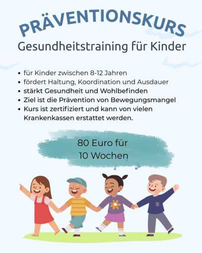 Präventionskurs für Kinder immer dienstags von 16:15 - 17:15 Uhr.