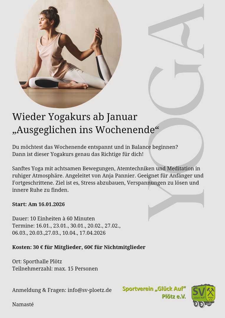 Verbindliche Anmeldungen aufgrund begrenzter Teilnehmerzahlen werden für alle Kurse bereits jetzt schon per Mail an info@sv-ploetz.de angenommen.